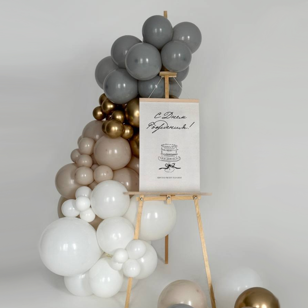 После оформления заказа вы сможете согласовать с нашим менеджером цветовую гамму, изменить состав, добавить или убрать фигуры, а также нанести надписи на шарики.