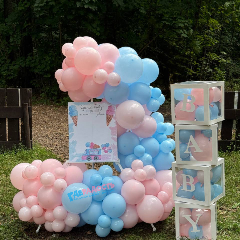 После оформления заказа вы сможете согласовать с нашим менеджером цветовую гамму, изменить состав, добавить или убрать фигуры, а также нанести надписи на шарики.