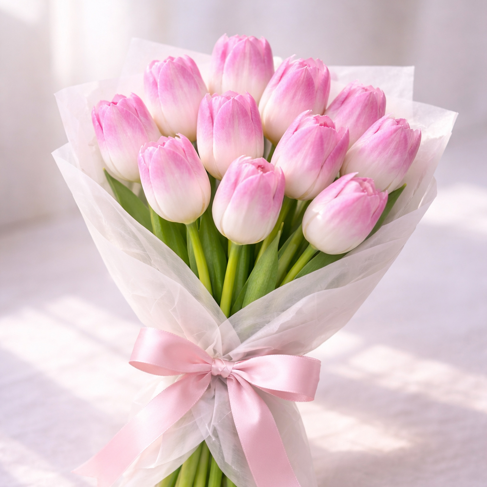 Букет из 15 розовых тюльпанов В наличии Букет из 15 розовых тюльпанов