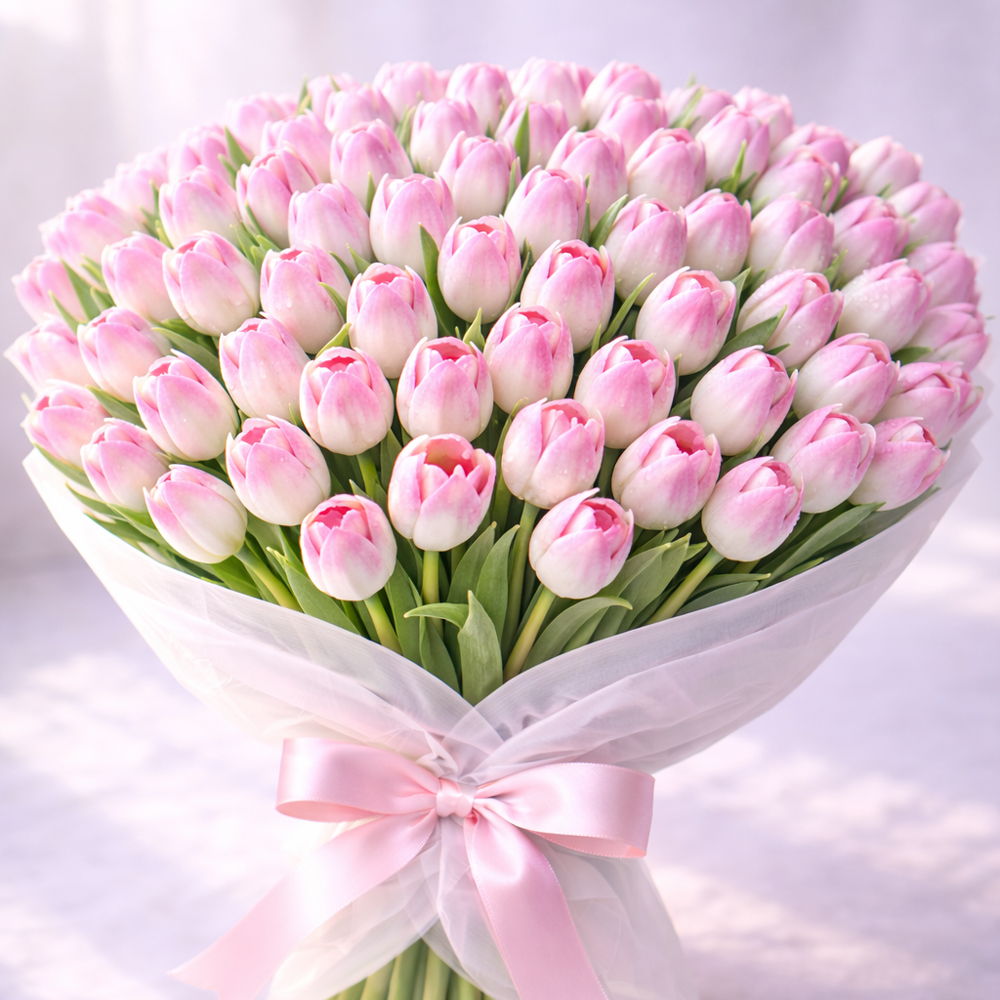 Букет из 90 розовых тюльпанов В наличии Букет из 90 розовых тюльпанов