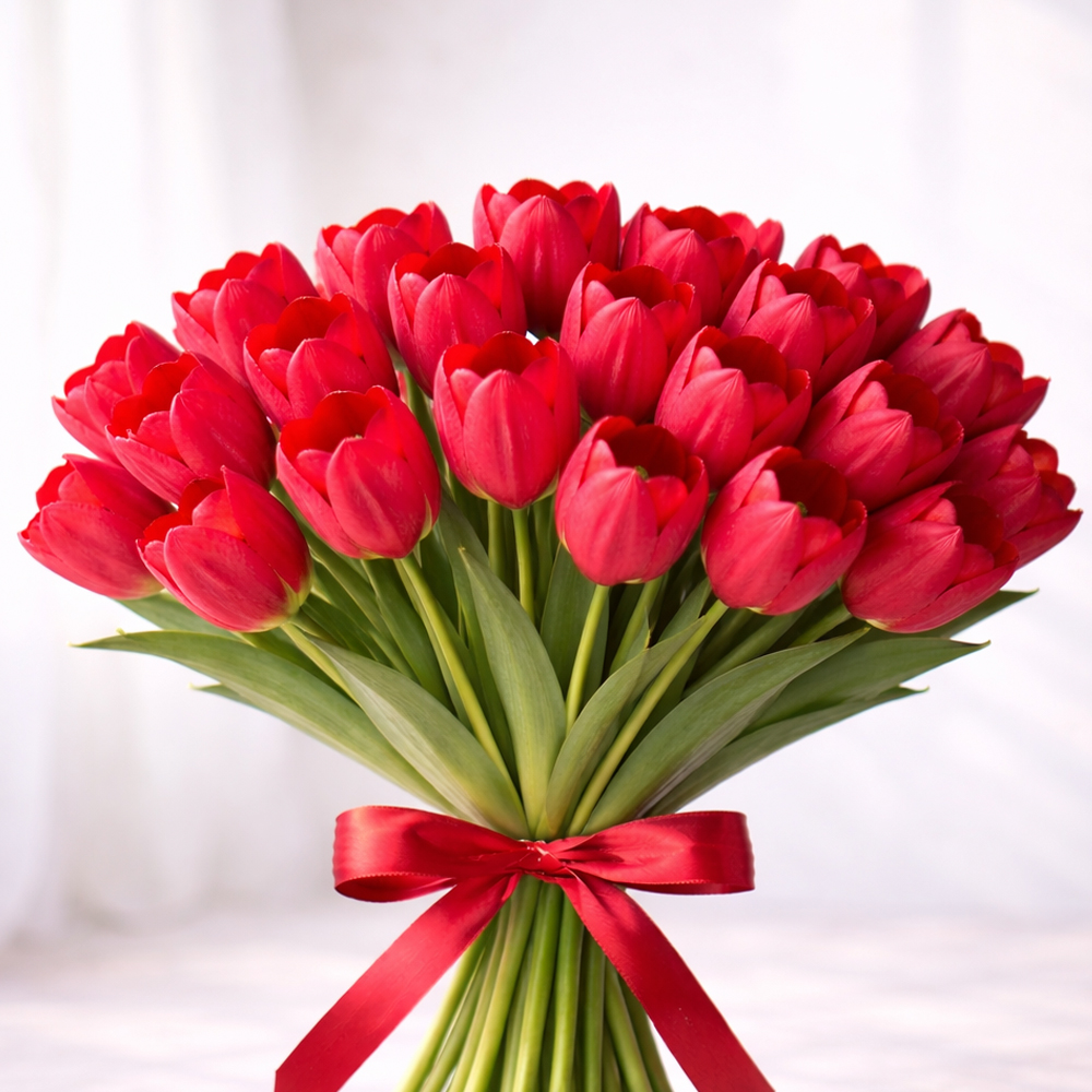 Букет из 40 красных тюльпанов В наличии Букет из 40 красных тюльпанов