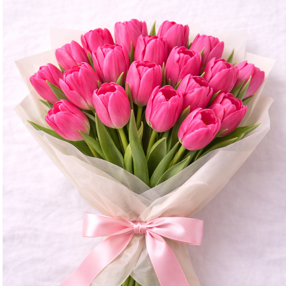Букет из 15 розовых тюльпанов В наличии Букет из 15 розовых тюльпанов