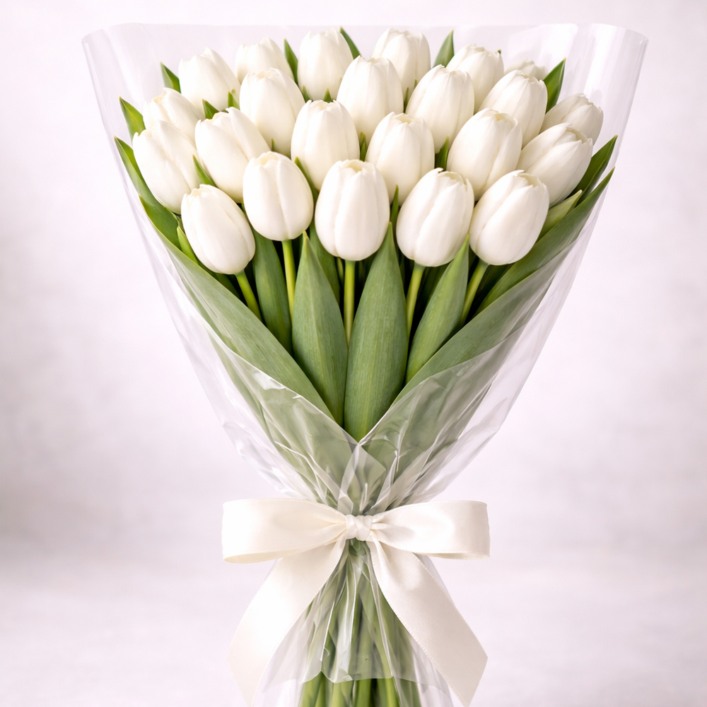 Букет из 40 белых тюльпанов В наличии Букет из 40 белых тюльпанов