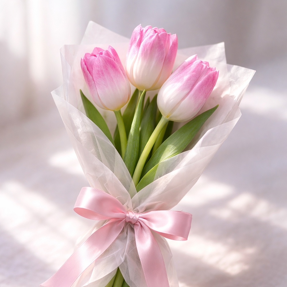 Букет из 5 бело-розовых тюльпанов В наличии Букет из 5 бело-розовых тюльпанов