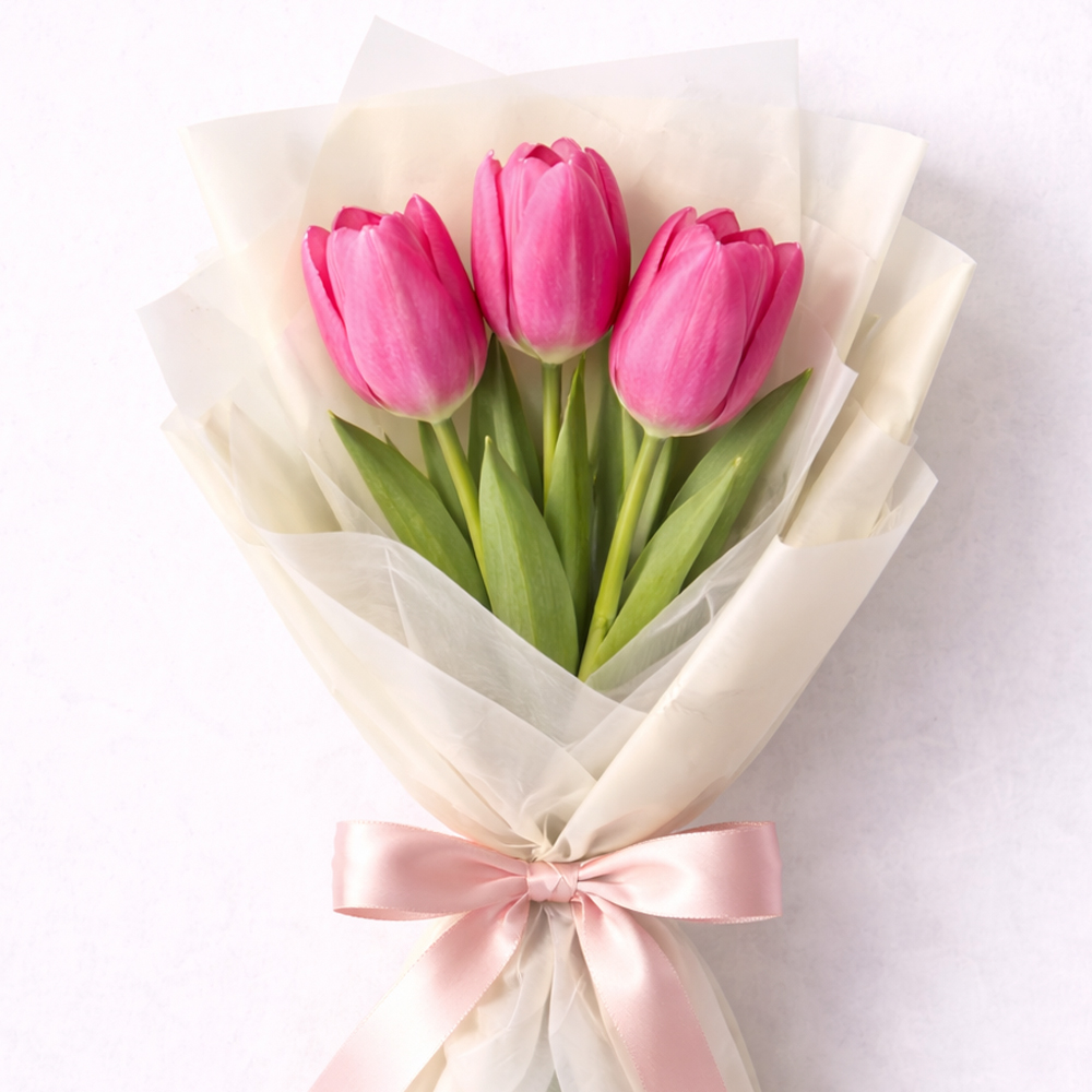 Букет из 5 розовых тюльпанов В наличии Букет из 5 розовых тюльпанов