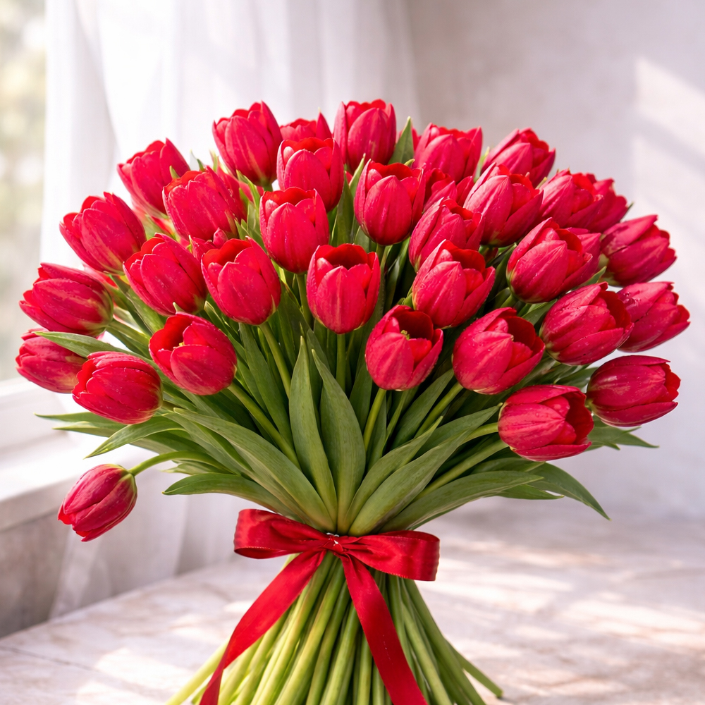 Букет из 50 красных тюльпанов В наличии Букет из 50 красных тюльпанов
