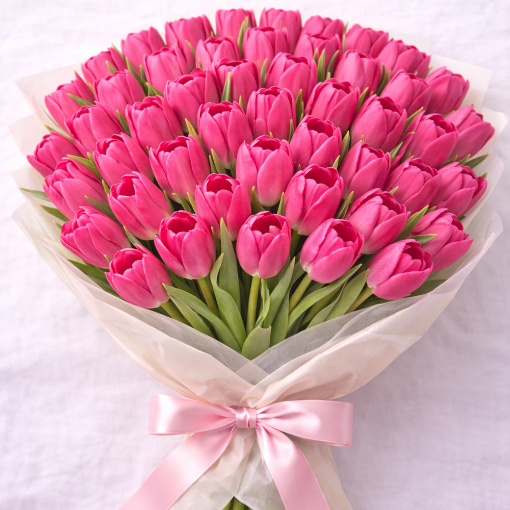 Букет из 90 розовых тюльпанов В наличии Букет из 90 розовых тюльпанов