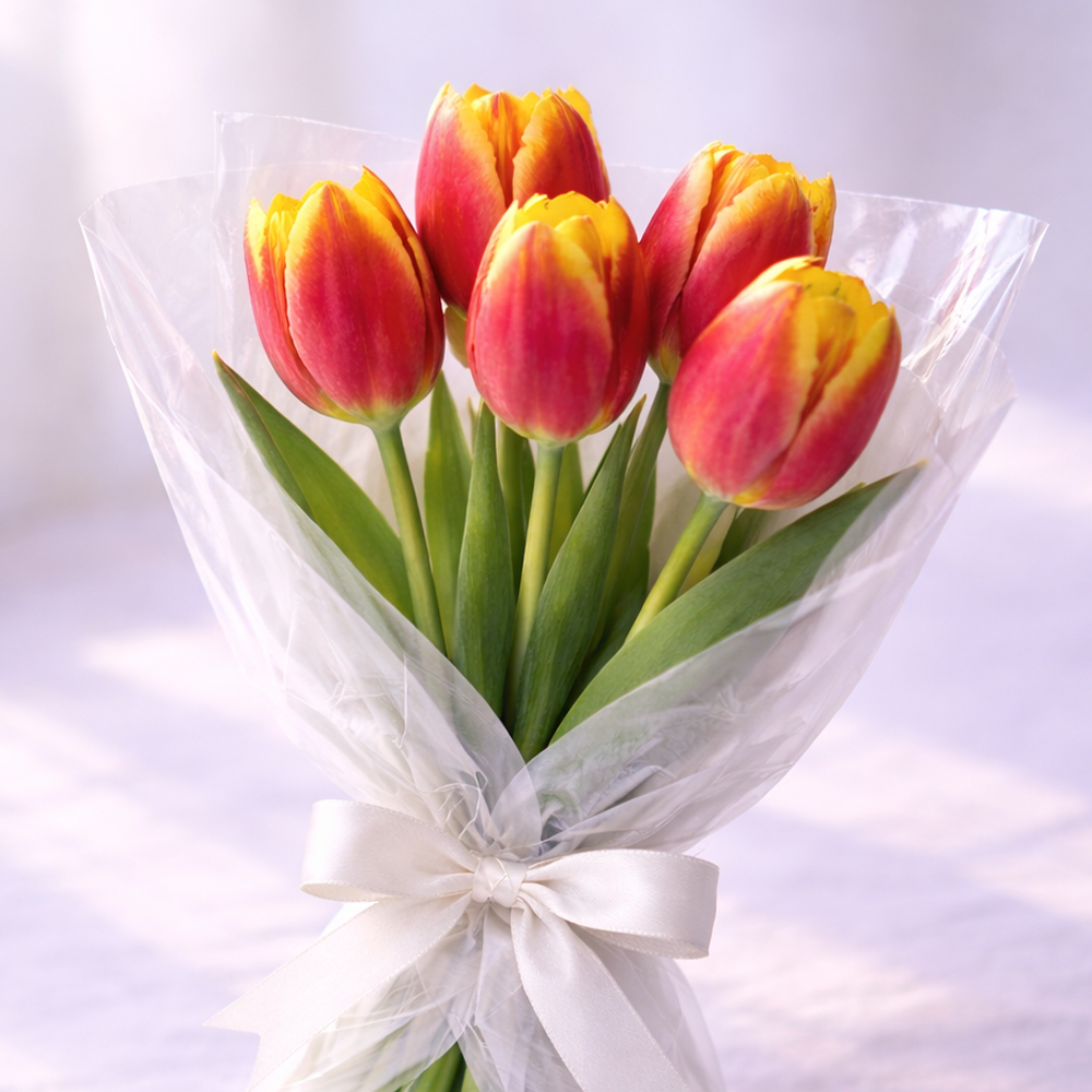 Букет из 3 красно-желтых тюльпанов В наличии Букет из 3 красно-желтых тюльпанов