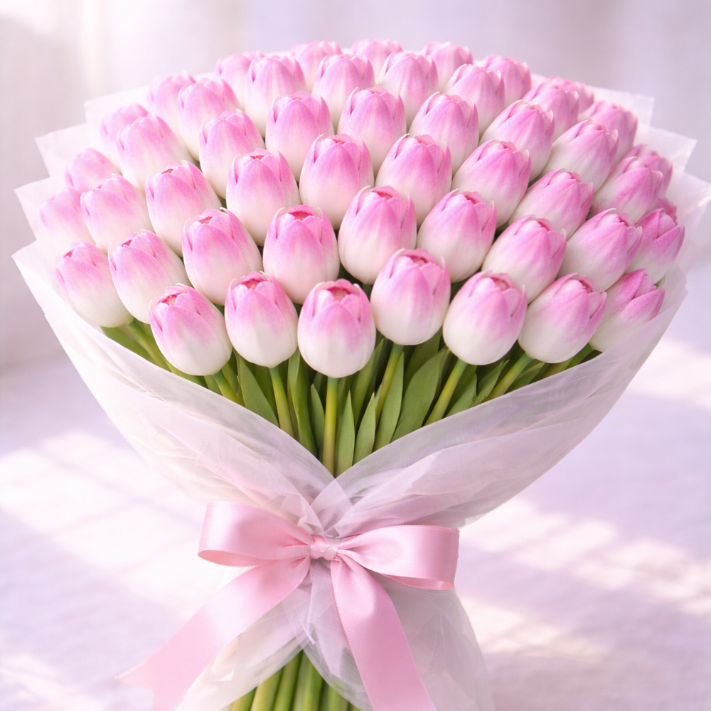 Букет из 90 розовых тюльпанов В наличии Букет из 90 розовых тюльпанов
