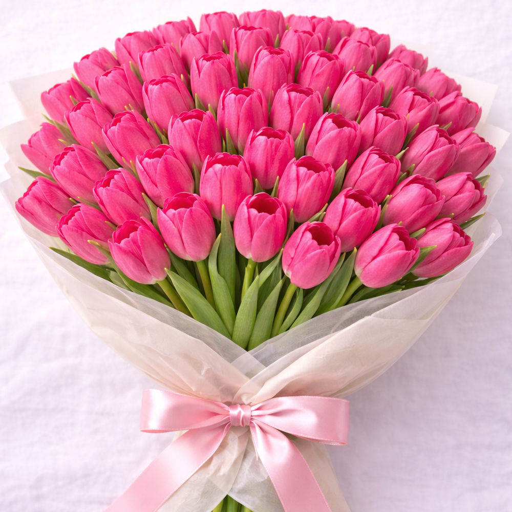 Букет из 90 розовых тюльпанов В наличии Букет из 90 розовых тюльпанов