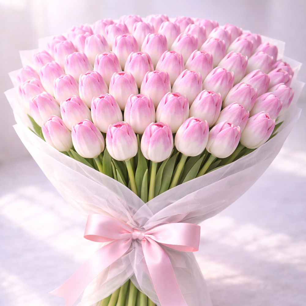 Букет из 90 розовых тюльпанов В наличии Букет из 90 розовых тюльпанов