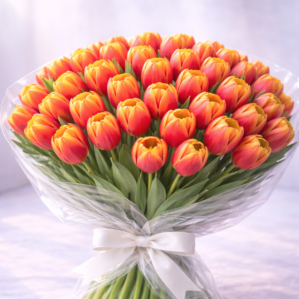 Букет из 60 красно-желтых тюльпанов В наличии Букет из 60 красно-желтых тюльпанов