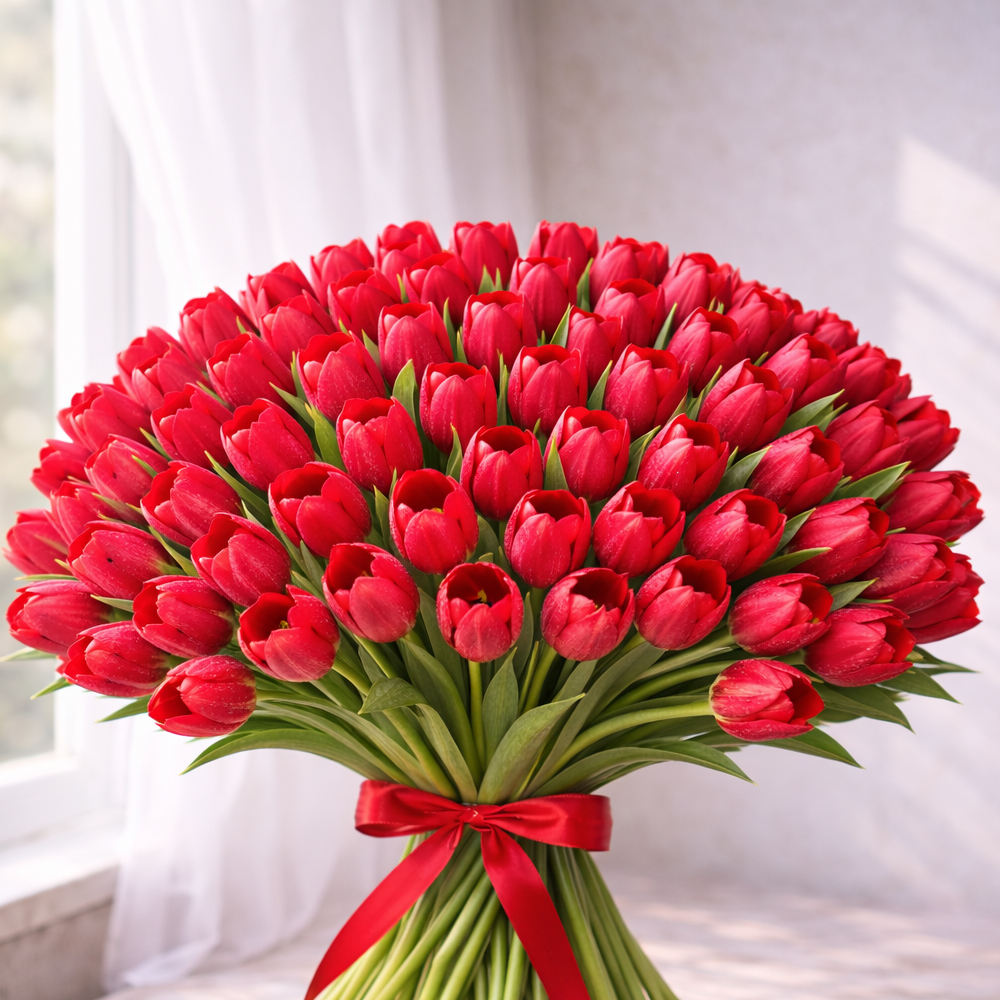 Букет из 50 красных тюльпанов В наличии Букет из 50 красных тюльпанов