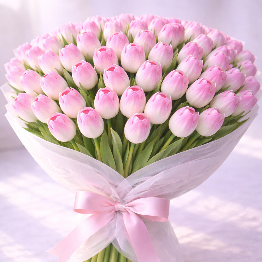 Букет из 90 розовых тюльпанов В наличии Букет из 90 розовых тюльпанов