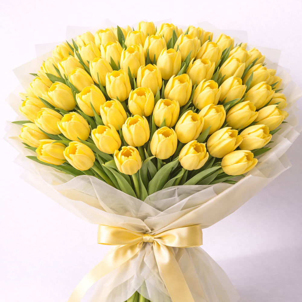 Букет из 100 желтых тюльпанов В наличии Букет из 100 желтых тюльпанов