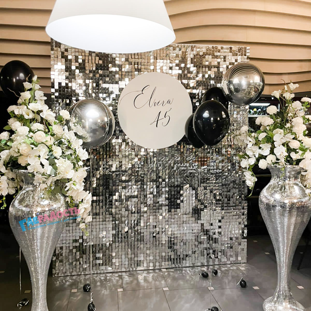 Заказать Фотозона из шаров "Блеск серебра" с доставкой в Москве и области. Фотозона из шаров "Блеск серебра" - гарантия полета, скидки, акции.