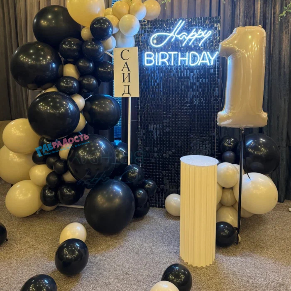 Заказать Фотозона из шаров "Чёрный Неон" с доставкой в Москве и области. Фотозона из шаров "Чёрный Неон" - гарантия полета, скидки, акции.
