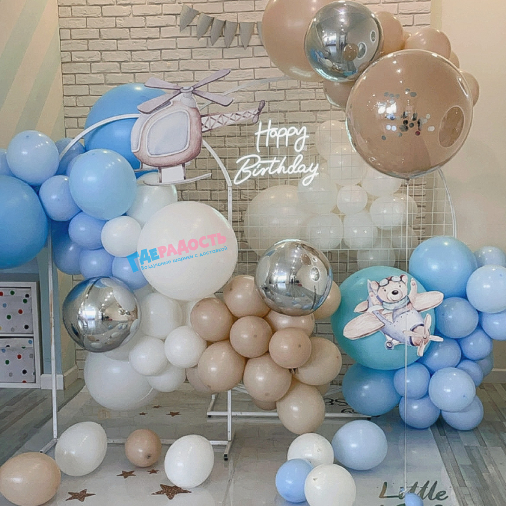 После оформления заказа вы сможете согласовать с нашим менеджером цветовую гамму, изменить состав, добавить или убрать фигуры, а также нанести надписи на шарики.