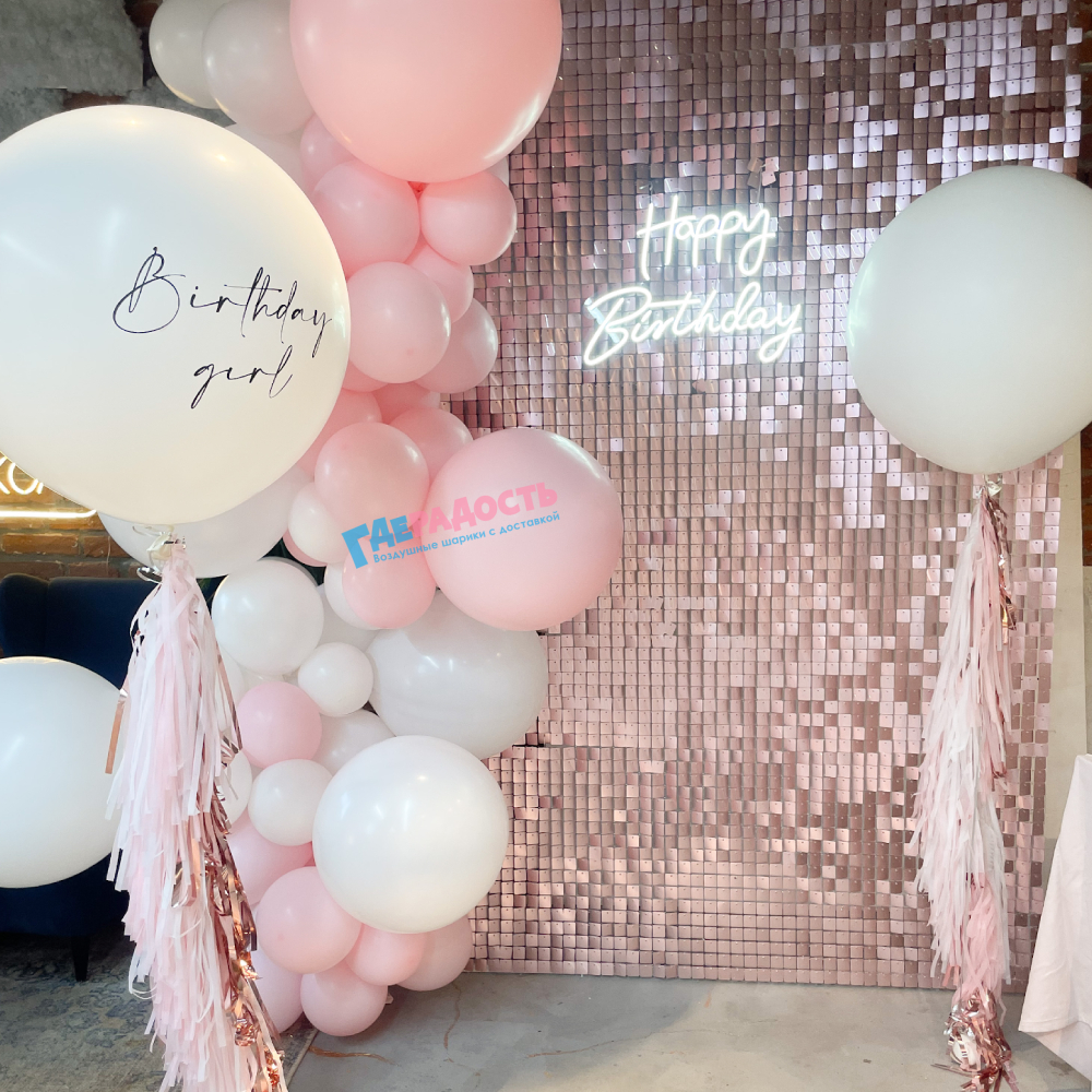 Заказать Фотозона из шаров "Розовая нежность" с доставкой в Москве и области. Фотозона из шаров "Розовая нежность" - гарантия полета, скидки, акции.