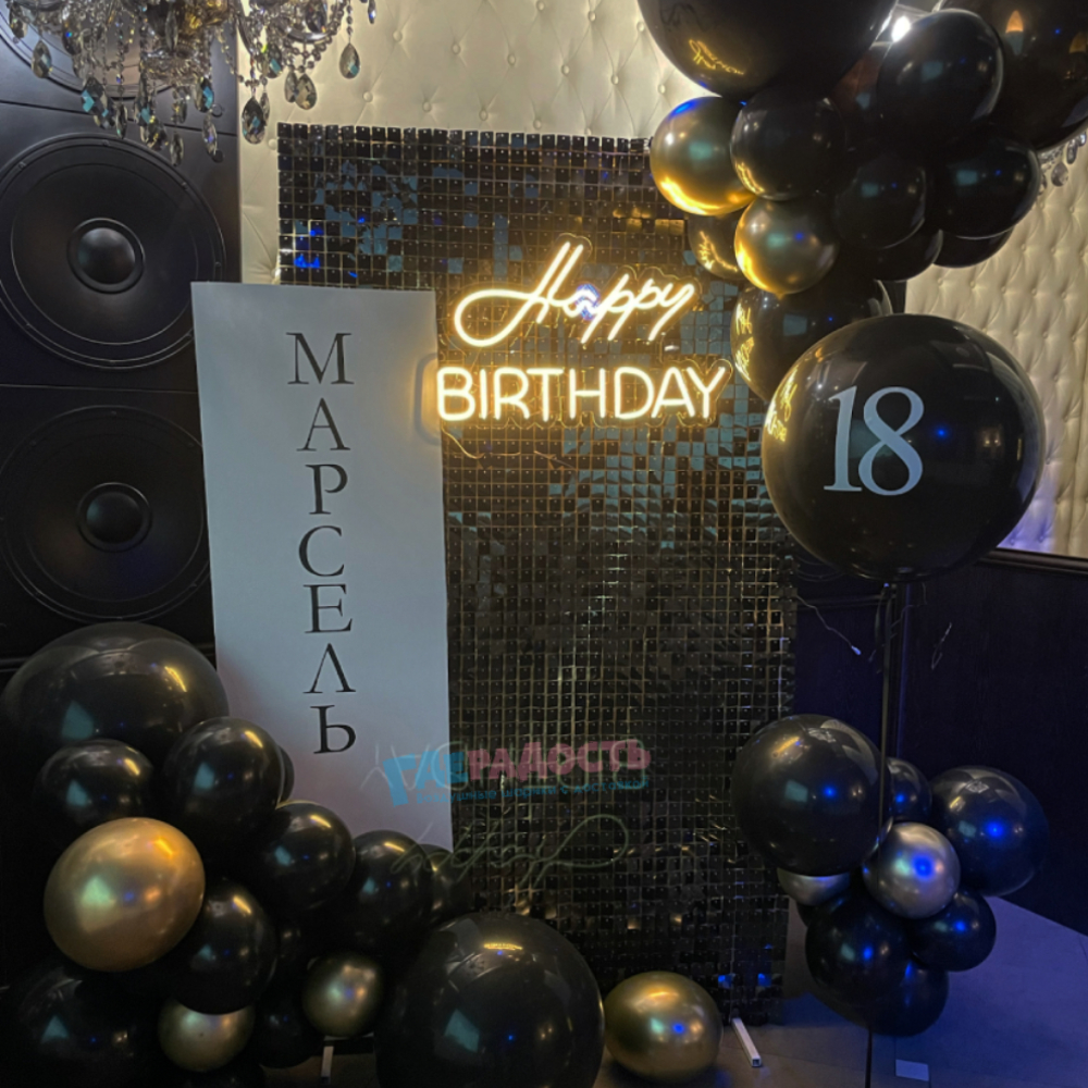 Заказать Фотозона из шаров "Стильное совершеннолетие" с доставкой в Москве и области. Фотозона из шаров "Стильное совершеннолетие" - гарантия полета, скидки, акции.