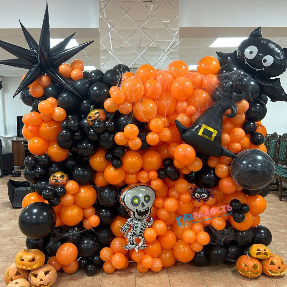 Заказать Фотозона из шаров "Вечер хеллоуина" с доставкой в Москве и области. Фотозона из шаров "Вечер хеллоуина" - гарантия полета, скидки, акции.