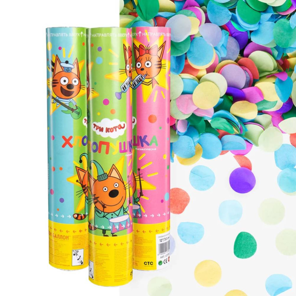 Заказать Хлопушка "Три кота" ассорти, 30 см с доставкой в Москве и области. Хлопушка "Три кота" ассорти, 30 см - гарантия полета, скидки, акции.