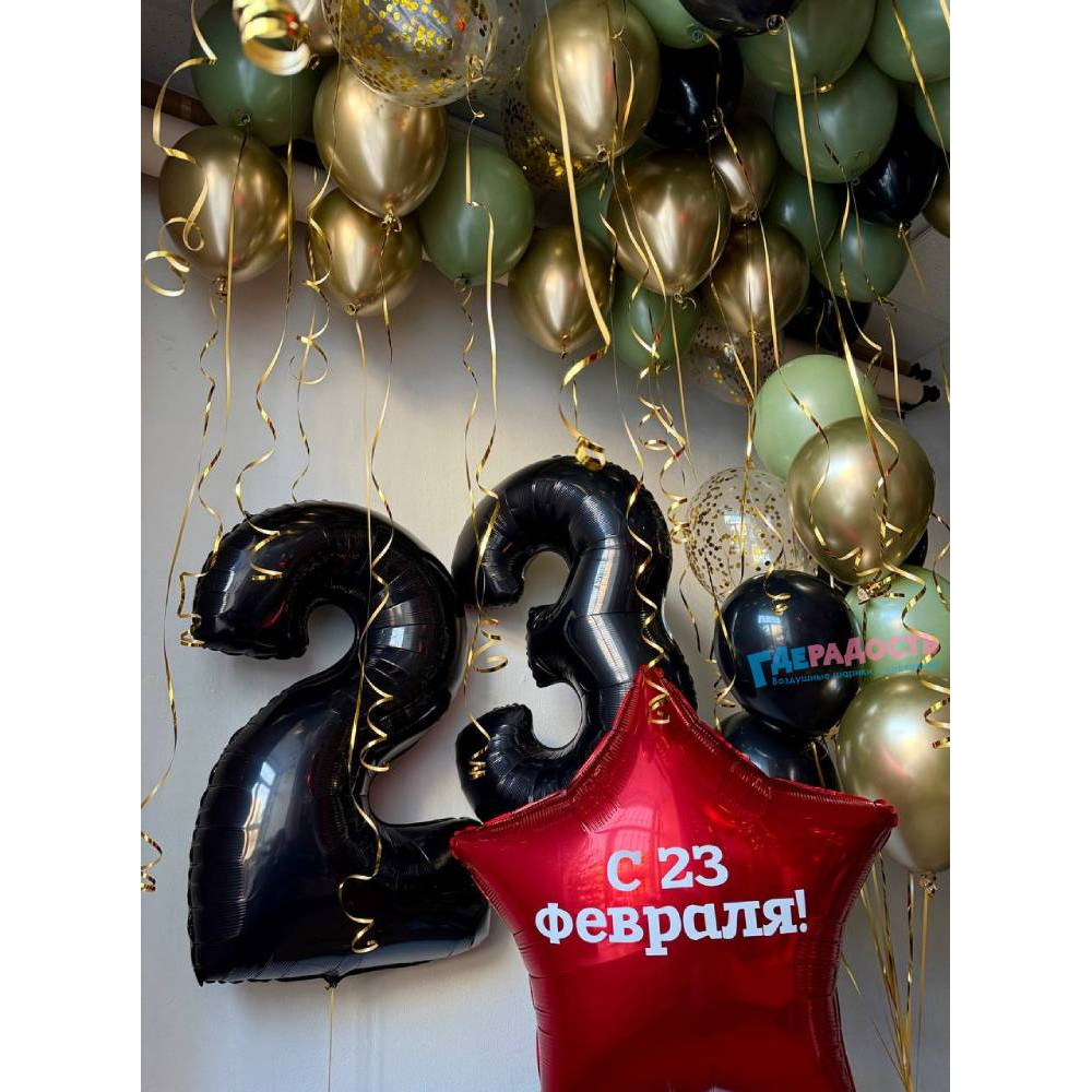 Заказать Композиция из шаров "Февральский дух" с доставкой в Москве и области. Композиция из шаров "Февральский дух" - гарантия полета, скидки, акции.