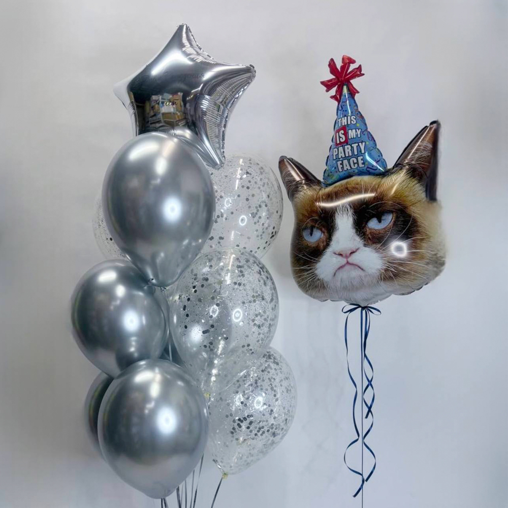 Заказать Композиция из шаров "Хмурый кот" с доставкой в Москве и области. Композиция из шаров "Хмурый кот" - гарантия полета, скидки, акции.
