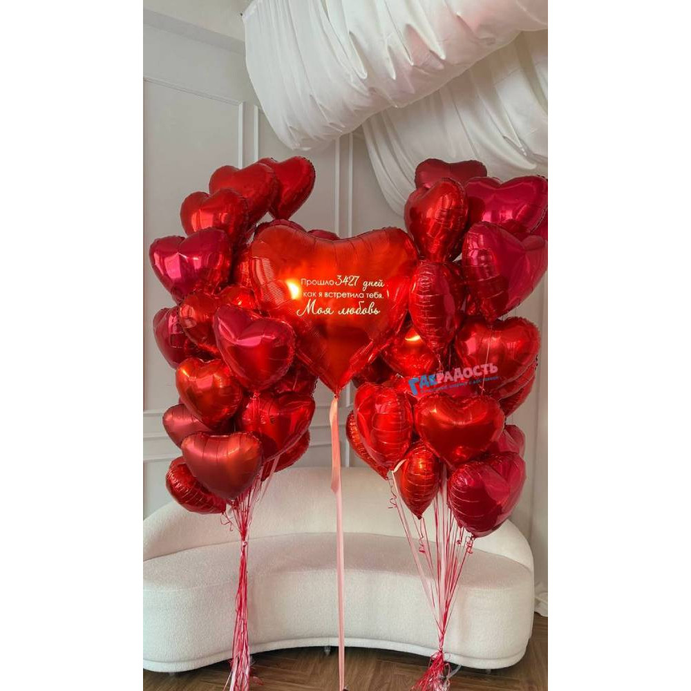 После оформления заказа вы сможете согласовать с нашим менеджером цветовую гамму, изменить состав, добавить или убрать фигуры, а также нанести надписи на шарики.