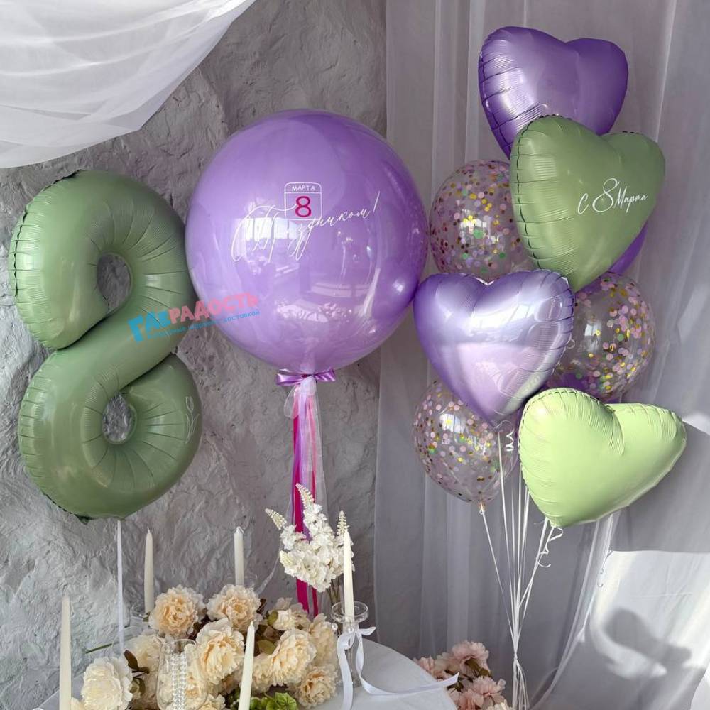Заказать Композиция из шаров "Нежное 8 марта" с доставкой в Москве и области. Композиция из шаров "Нежное 8 марта" - гарантия полета, скидки, акции.