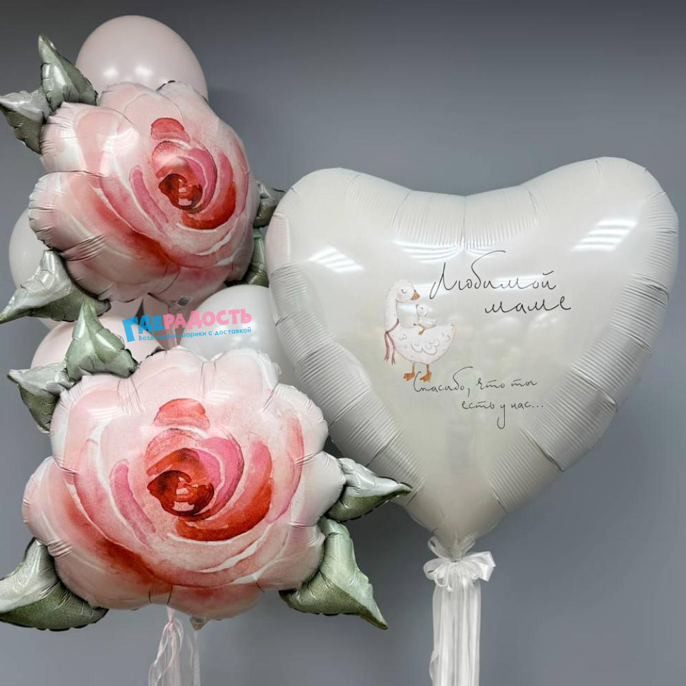 Заказать Композиция из шаров "Нежный подарок для мамы" с доставкой в Москве и области. Композиция из шаров "Нежный подарок для мамы" - гарантия полета, скидки, акции.
