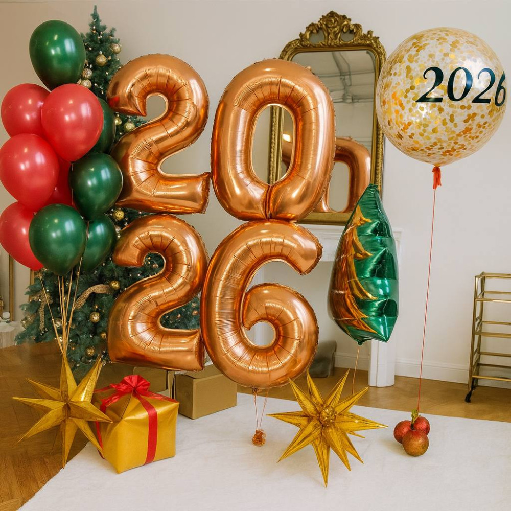 Заказать Композиция из шаров "Новогоднее настроение" с доставкой в Москве и области. Композиция из шаров "Новогоднее настроение" - гарантия полета, скидки, акции.