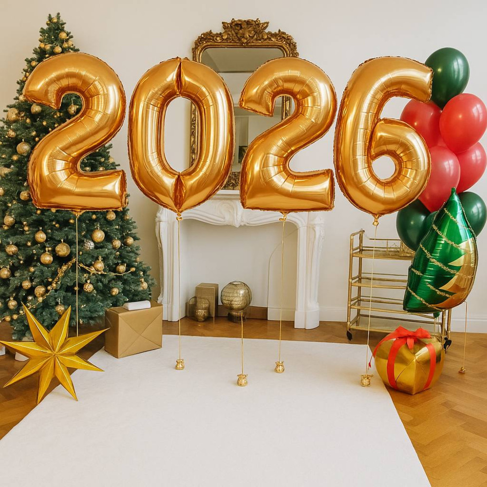 Заказать Композиция из шаров "Новогоднее веселье" с доставкой в Москве и области. Композиция из шаров "Новогоднее веселье" - гарантия полета, скидки, акции.