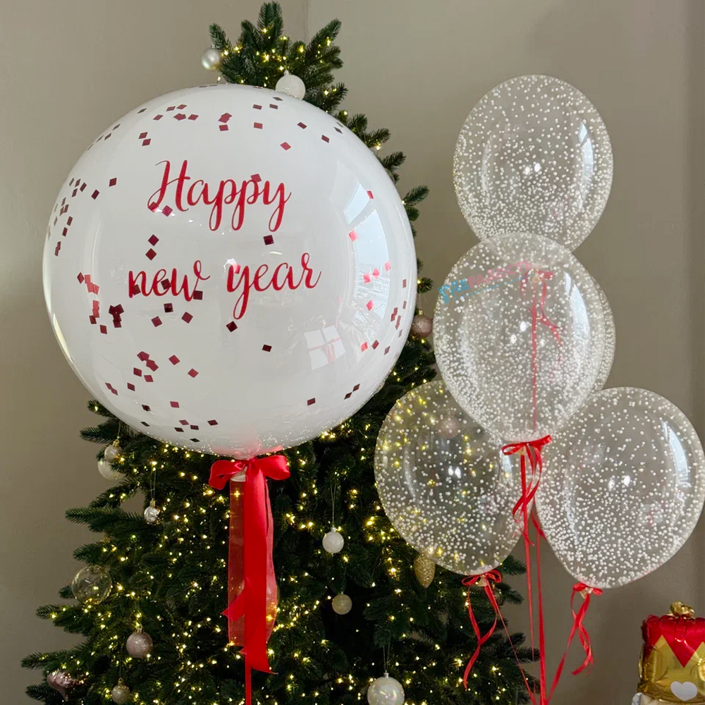 Заказать Композиция из шаров "Новогодние снежные шары" с доставкой в Москве и области. Композиция из шаров "Новогодние снежные шары" - гарантия полета, скидки, акции.