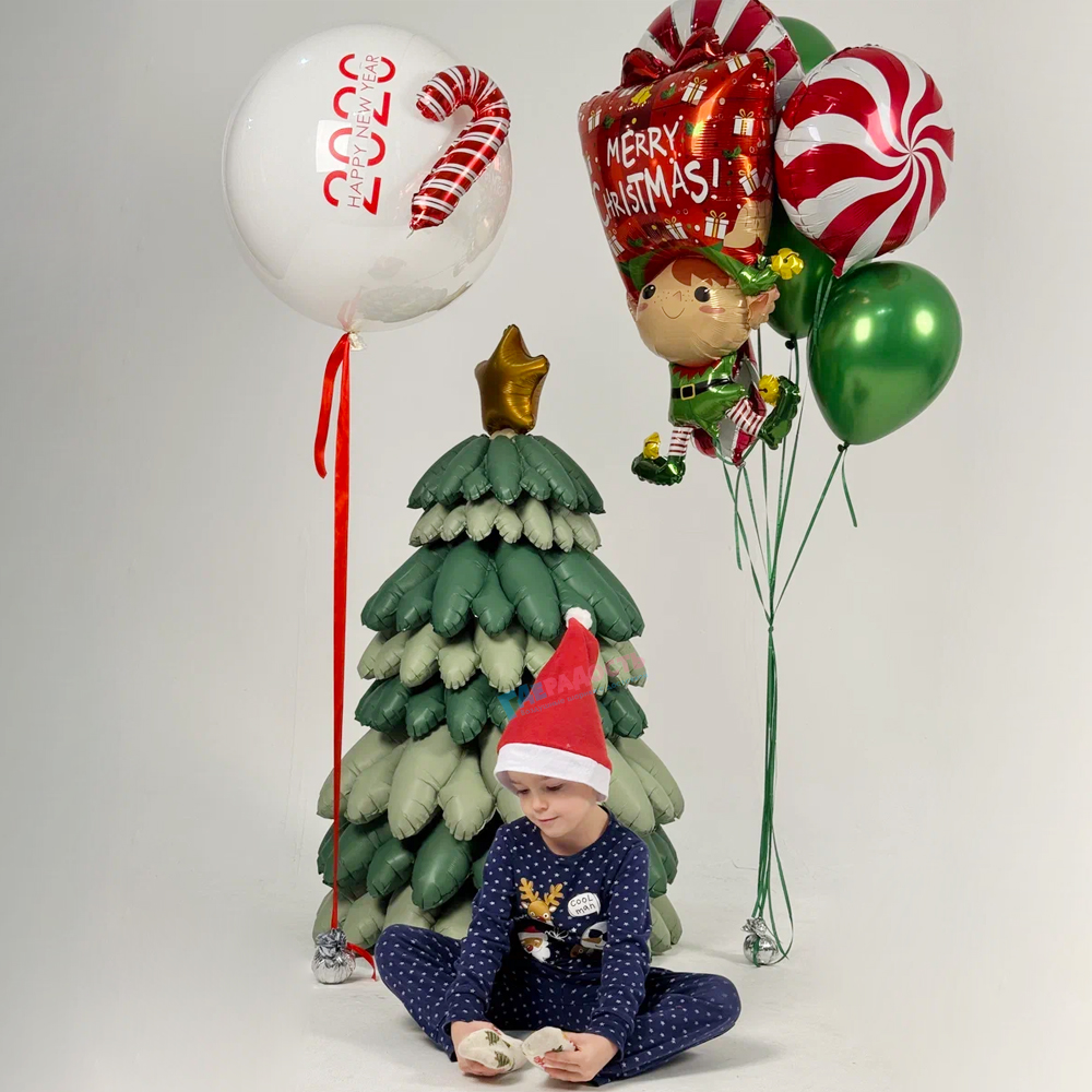 Заказать Композиция из шаров "Новогодний эльф" с доставкой в Москве и области. Композиция из шаров "Новогодний эльф" - гарантия полета, скидки, акции.