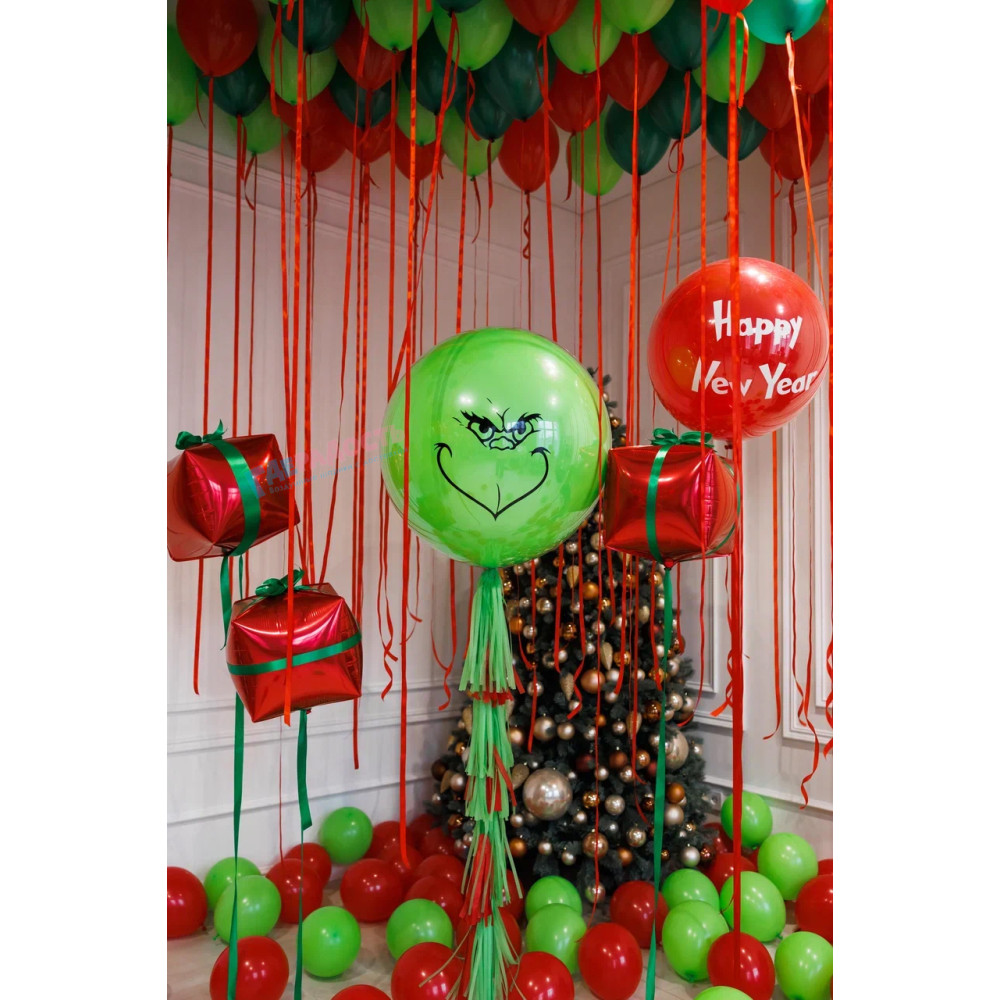 Заказать Композиция из шаров "Подарочки с Гринчем на Новый Год" с доставкой в Москве и области. Композиция из шаров "Подарочки с Гринчем на Новый Год" - гарантия полета, скидки, акции.