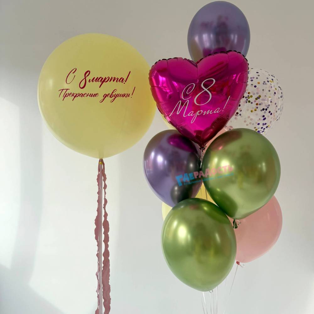 Заказать Композиция из шаров "Праздник весны и красоты" с доставкой в Москве и области. Композиция из шаров "Праздник весны и красоты" - гарантия полета, скидки, акции.