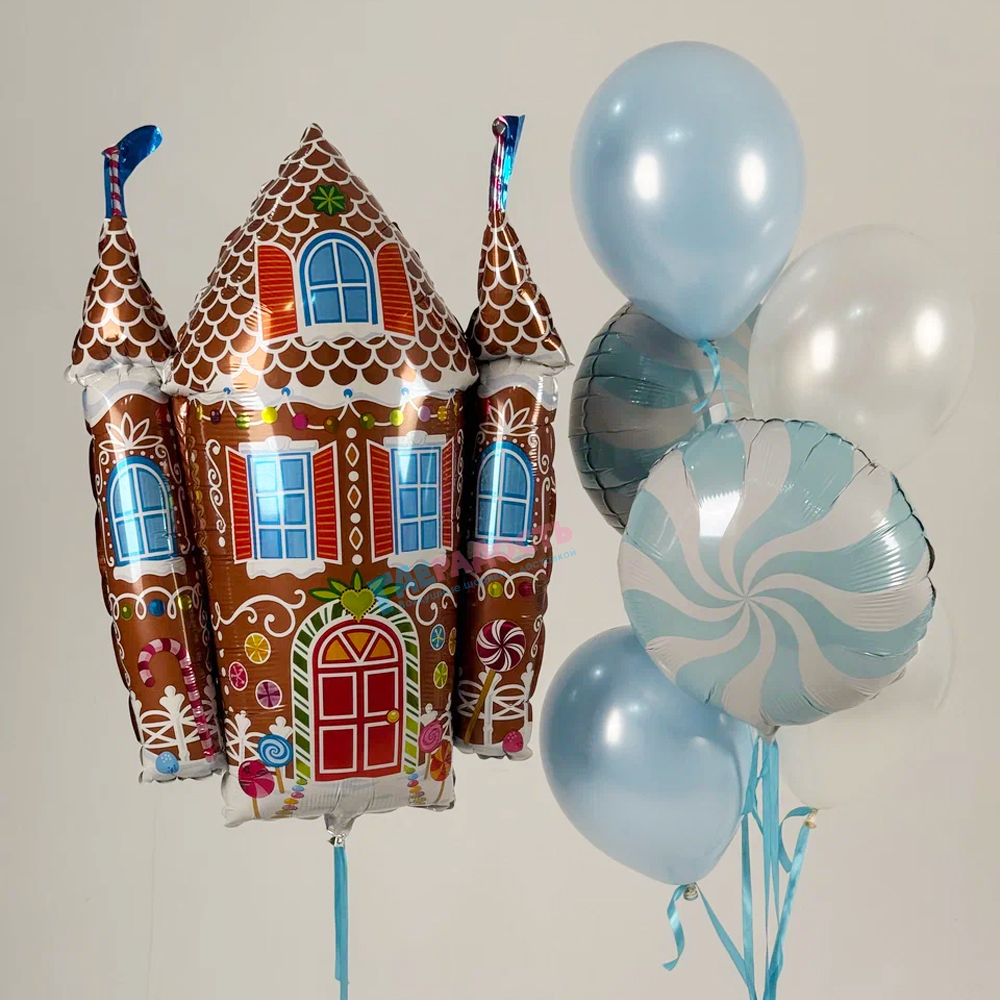 Заказать Композиция из шаров "Пряничный замок" с доставкой в Москве и области. Композиция из шаров "Пряничный замок" - гарантия полета, скидки, акции.