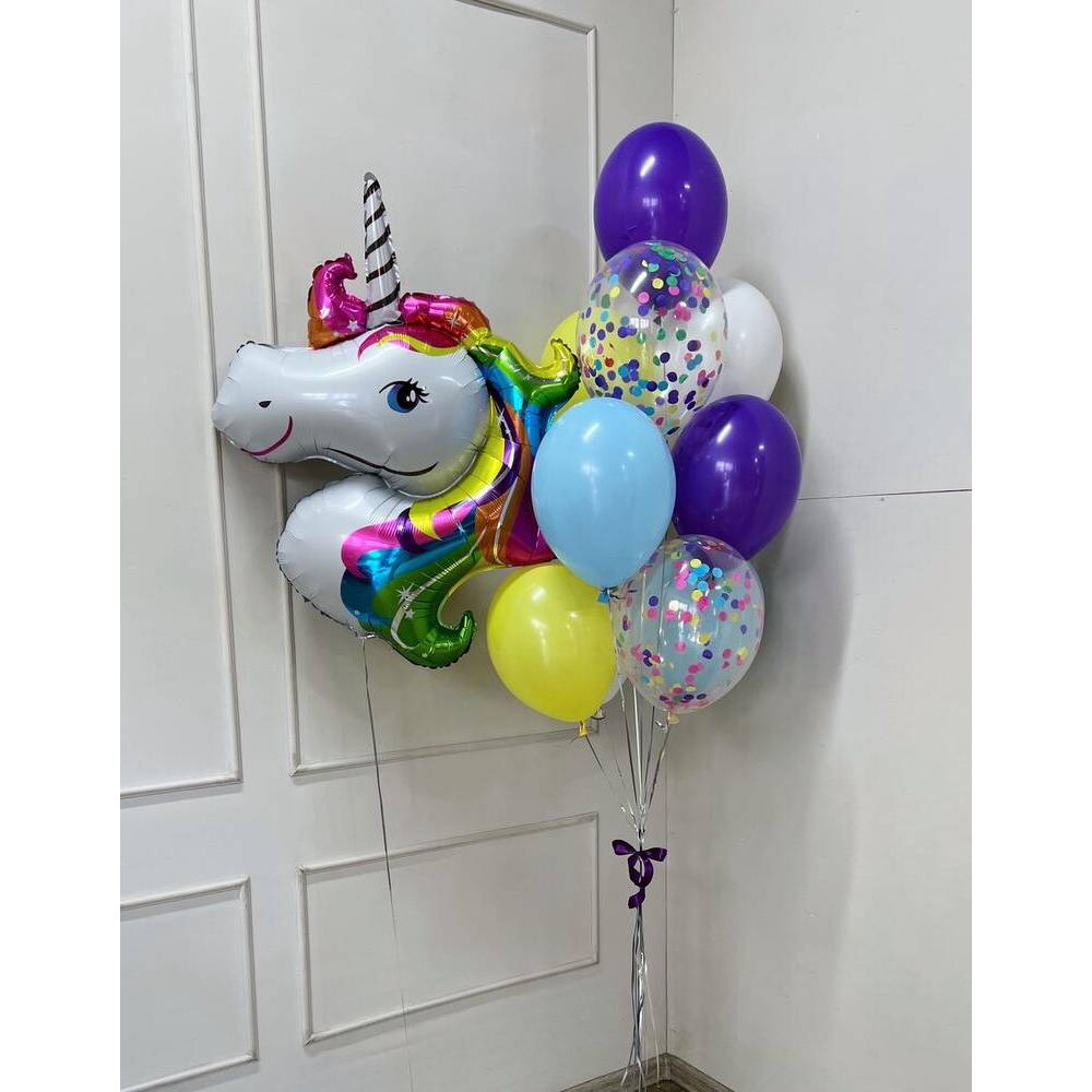 Заказать Композиция из шаров "Разноцветный единорог" с доставкой в Москве и области. Композиция из шаров "Разноцветный единорог" - гарантия полета, скидки, акции.