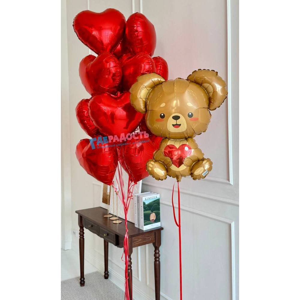 Заказать Композиция из шаров "Сердечный мишка" с доставкой в Москве и области. Композиция из шаров "Сердечный мишка" - гарантия полета, скидки, акции.