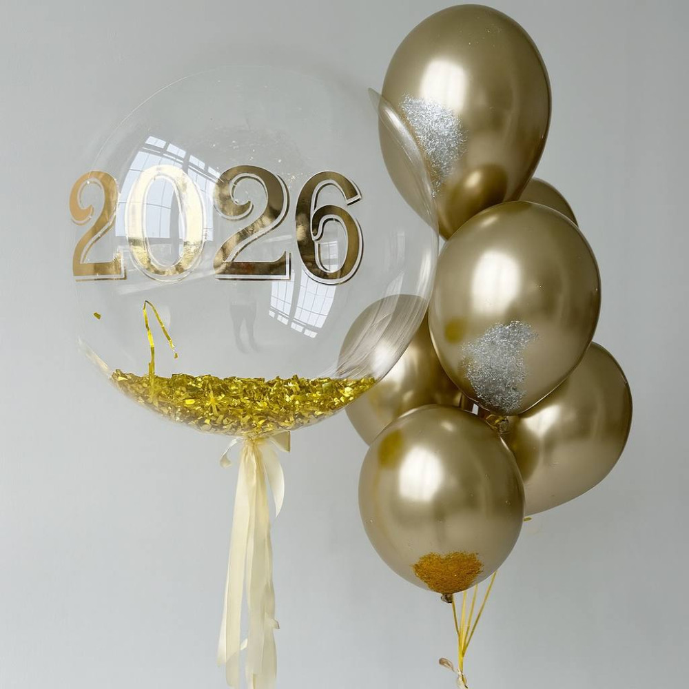 Заказать Композиция из шаров "Золотой Новый Год" с доставкой в Москве и области. Композиция из шаров "Золотой Новый Год" - гарантия полета, скидки, акции.