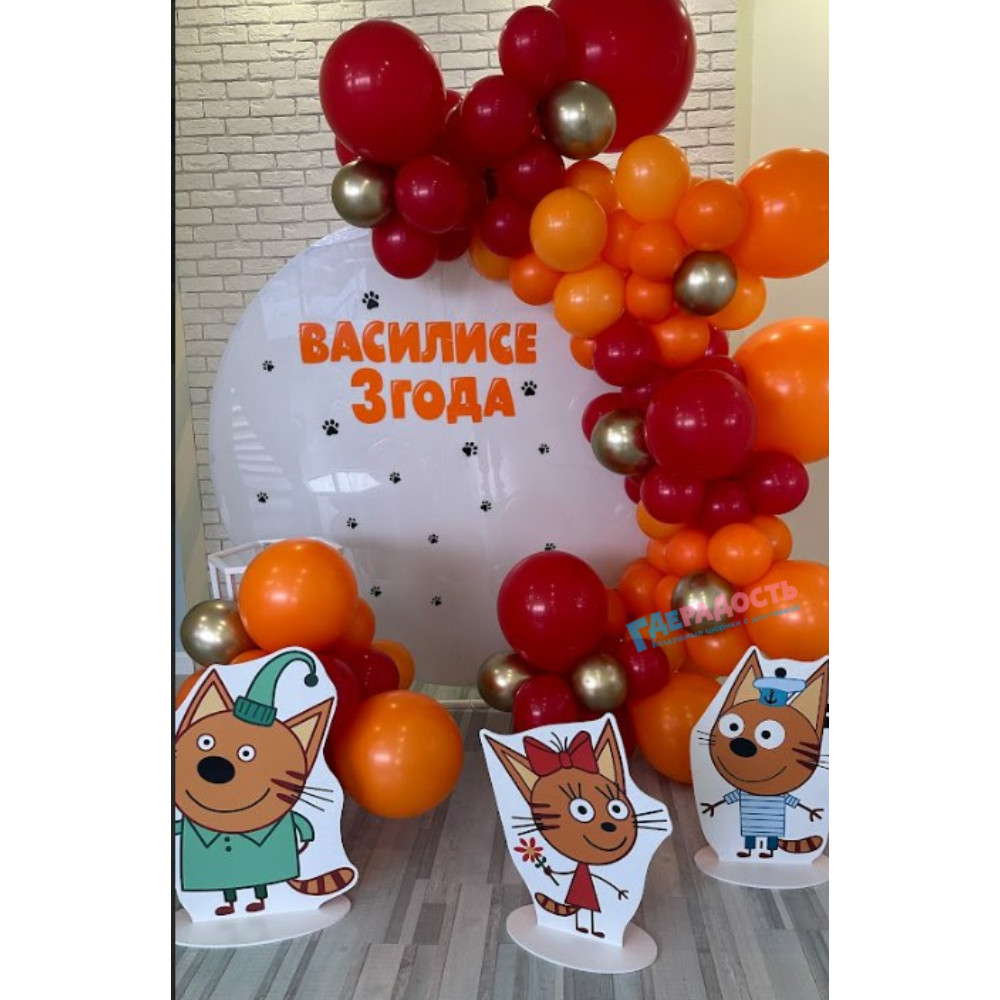 Заказать Круглая фотозона из шаров "Три кота" с доставкой в Москве и области. Круглая фотозона из шаров "Три кота" - гарантия полета, скидки, акции.