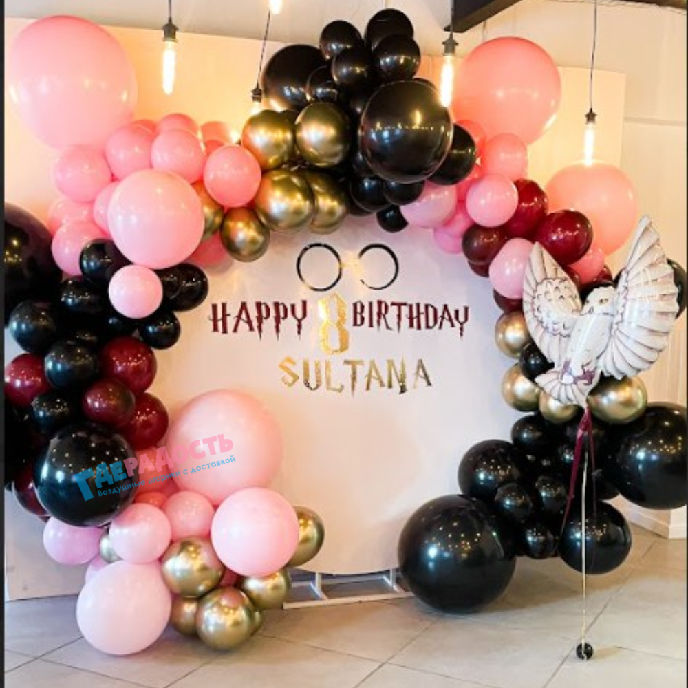 Заказать Круглая фотозона из шаров "В стиле Гарри Поттера" с доставкой в Москве и области. Круглая фотозона из шаров "В стиле Гарри Поттера" - гарантия полета, скидки, акции.