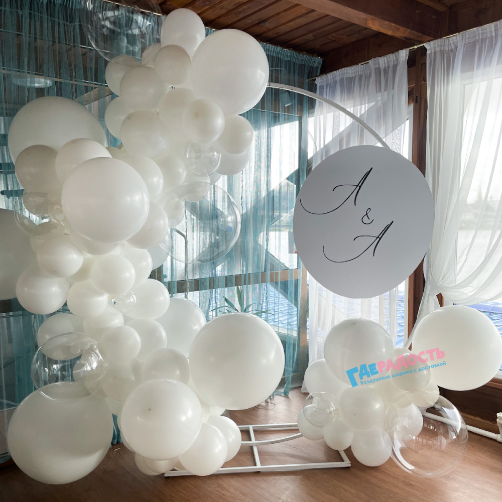 Заказать Круглая фотозона из шаров "Воздушное счастье" с доставкой в Москве и области. Круглая фотозона из шаров "Воздушное счастье" - гарантия полета, скидки, акции.