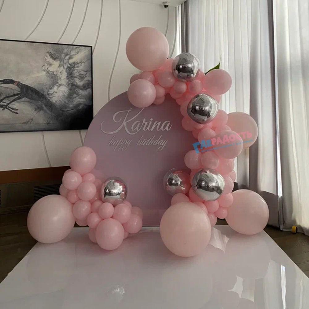 После оформления заказа вы сможете согласовать с нашим менеджером цветовую гамму, изменить состав, добавить или убрать фигуры, а также нанести надписи на шарики.