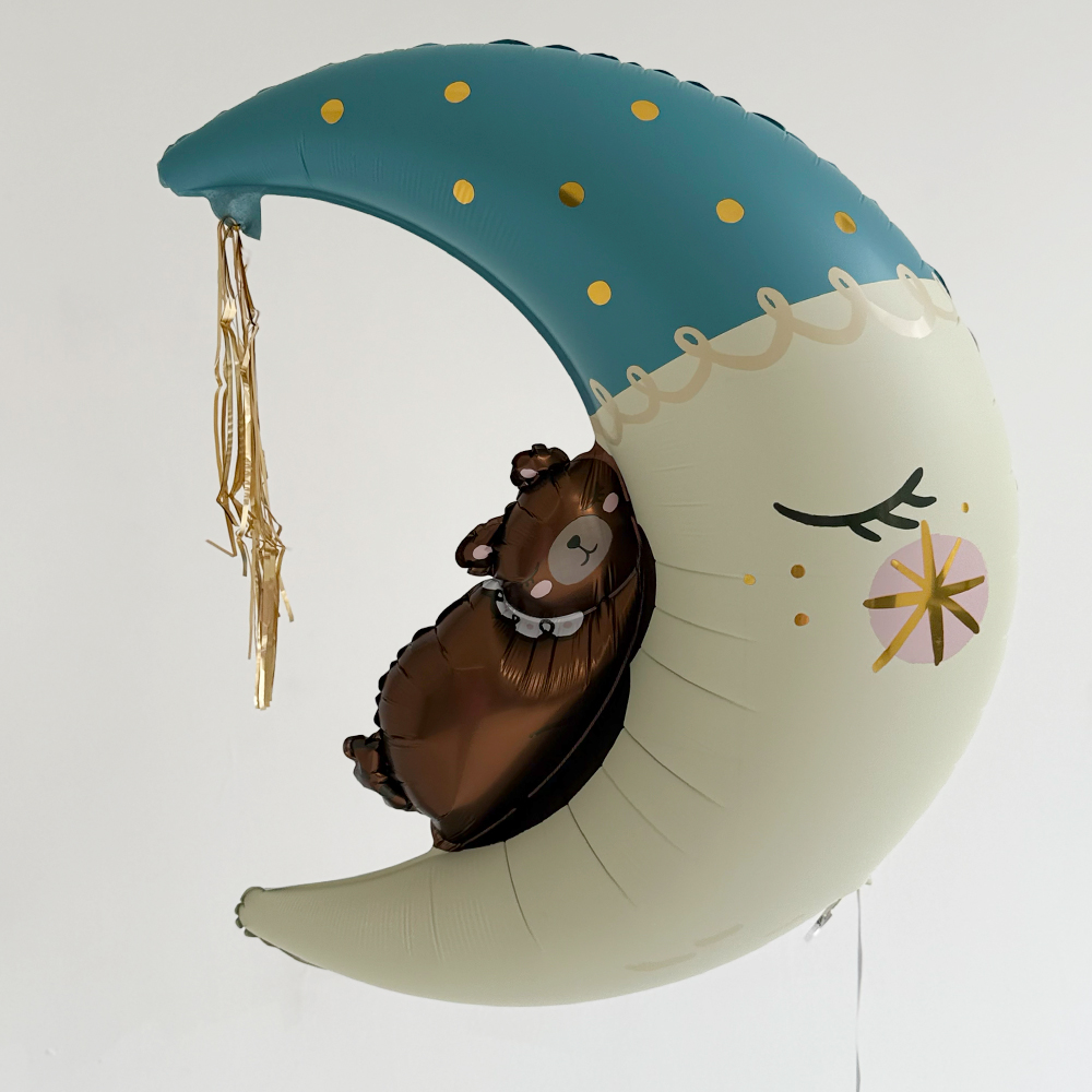 Заказать Шар фигура "Полумесяц с медвежонком", синий с доставкой в Москве и области. Шар фигура "Полумесяц с медвежонком", синий - гарантия полета, скидки, акции.