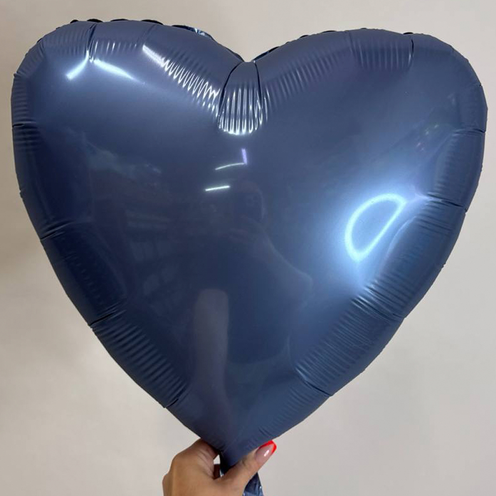 Заказать Шар сердце стальной синий сатин, 46 см с доставкой в Москве и области. Шар сердце стальной синий сатин, 46 см - гарантия полета, скидки, акции.